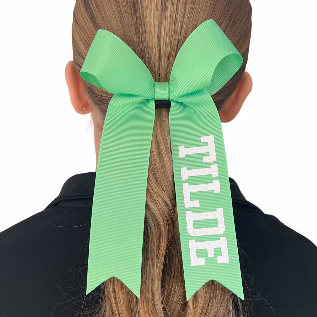 Cheerrosetten är av mjuk modell med tofs och dekorerad med ett glittrande namntryck.