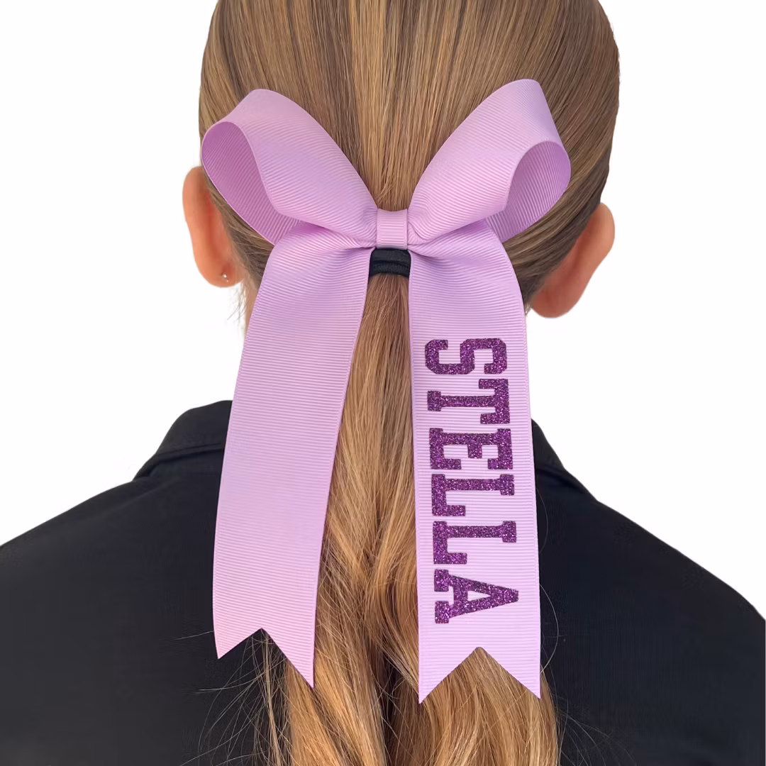 Cheerrosetten är av mjuk modell med tofs och dekorerad med ett glittrande namntryck.