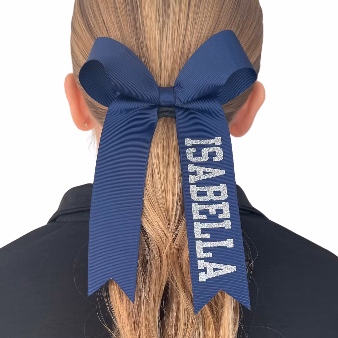 Cheerrosetten är av mjuk modell med tofs och dekorerad med ett glittrande namntryck.