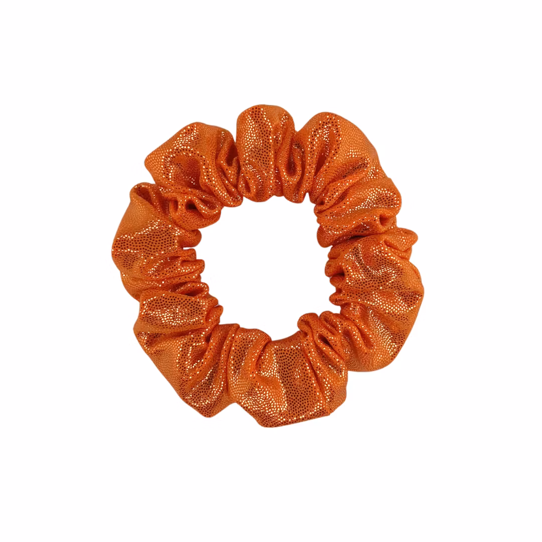 Handgjord scrunchie i glittrande tyg. Sätt upp som en vanlig tofs eller tillsammans med en hårdonut. Den perfekta scrunchien för cheerleading, konståkning, gymnastik och fest.