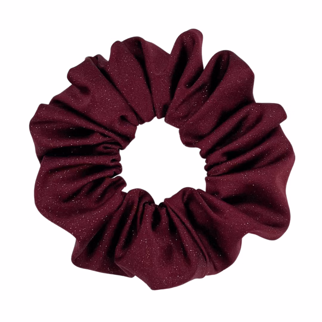 Handgjord scrunchie i glittrande tyg. Sätt upp som en vanlig tofs eller tillsammans med en hårdonut. Den perfekta scrunchien för cheerleading, konståkning, gymnastik och fest.